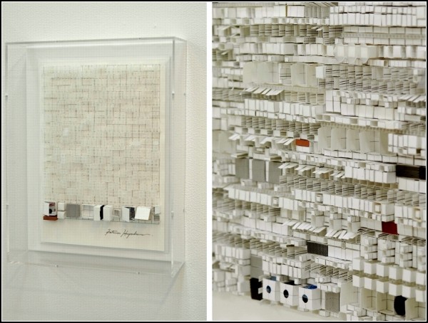 Футуристические бумажные инсталляции от Катсуми Хаякавы (Katsumi Hayakawa)Кому и для чего нужны небоскребы, в которых невозможно жить, и скульптуры, которые нельзя потрогать? Задайте этот вопрос японскому художнику и дизайнеру по имени Катсуми Хаякава (Katsumi Hayakawa), - и он покажет вам выставку своих работ из бумаги, которые не то скульптуры, не то макеты будущих футуристических зданий... Сам же автор предпочитает называть их трехмерными бумажными инсталляциями, а увидеть их можно было в конце прошлого года в токийской галерее МоМо.Трудно себе представить, сколько времени и терпения должно быть у человека, чтобы своими руками сотворить вот такое. И большое и маленькое одновременно. Так, масштабные скульптуры, напоминающие небоскребы, словно бы созданы для крохотных человечков, размером с муравьишку. Причем для целого полчища этих муравьишек, судя по количеству крохотных окошек и дверей в бумажных домах. Трехмерные бумажные скульптуры от Катсуми Хаякавы (Katsumi Hayakawa) Не то небоскребы, не то схемы коммуникаций Футуристические бумажные строения от японского дизайнераХотя некоторые почитатели утверждают, что это вовсе не небоскребы, а снимки аккуратных токийских кварталов, сделанные со спутника или самолета. Ну или же схемы подземных коммуникаций, спрятанные глубоко внизу, под толщей асфальта и глины. Но что же это на самом деле за конструкции, знает только сам автор. И не говорит. Только показывает. Ясно одно: ни муравьи, ни человечки здесь жить не будут. Футуристические бумажные небоскребы Футуристические бумажные инсталляции от Катсуми Хаякавы (Katsumi Hayakawa)Обладая поистине ангельским терпением и нечеловеческой выдержкой, Катсуми Хаякава наверняка провел сотни человекочасов за своими инсталляциями, вырезая, сворачивая, склеивая и комбинируя маленькие частички будущих инсталляций. За усердие - респект, только вот что все это значит, - еще предстоит выяснить...